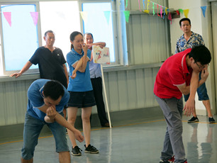 接下来是同心协力齐步走比赛,本项目很是考验团队成员间的默契度,比赛一开始参赛队员们喊着“1、2、1、2”的口号、迈着整齐的步伐,直奔终点线位置。最后超仁队获得小组赛的冠军。