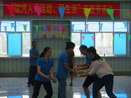 2018年中秋、国庆双节将至,为丰富员工的业余文化生活,给员工搭建沟通、交流、协助合作平台,增强团队凝聚力和向心力,提升员工归属感,培养团队合作意识,激发员工的工作热情,公司于9月20日在公司举办了以“骏鸿人爱运动、爱生活”为主题的庆双节第二届趣味运动会。本次活动比赛项目有:大象转圈接力赛、同心协力齐步走、企鹅漫步、拔河比赛、珠行万里,本次趣味运动会以充分体验团队凝聚力、彼此信任、彼此配合并让整个活动充满乐趣为宗旨,因此受到了各部门同事喜爱及积极参与。