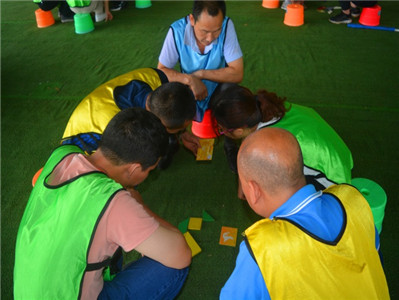 接下来我们挑战了第三个活动项目--《七巧板》,此项目主要激发团队学员主动沟通、强化资源共享的理念,活动结束后教练对我们在活动中呈现的状态及不足进行了准确的点评,让我们意识到了在日常工作中资源共享及沟通的重要性。