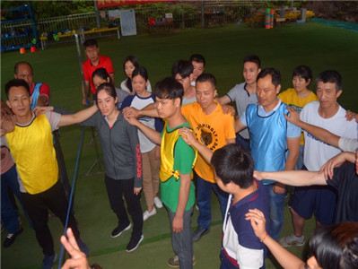 下午1:30教练安排的热身小游戏再一次激发了我们参与的热情。接着我们挑战了第二个活动项目--《智力电网》,此项目主要培养团队学员合理计划、统一行动意识及理念。经过激烈的比拼后“青春队”率先完成此活动项目。